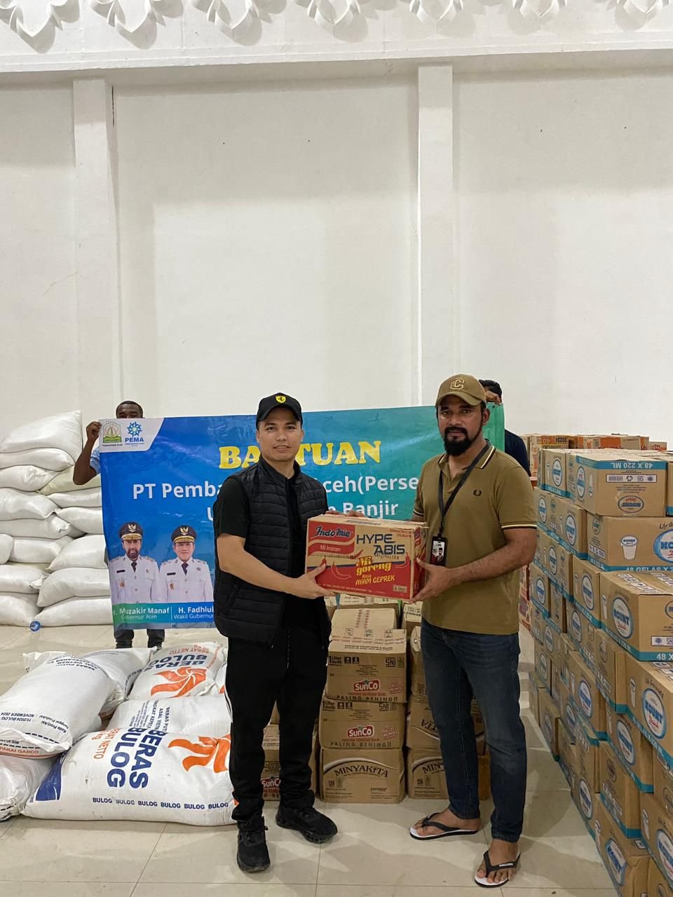 Dirut PT PEMA, Mawardi Nur menjelaskan bahwa bantuan yang diberikan berupa beberapa ton beras serta paket sembako yang terdiri dari minyak goreng, mi instan, dan air mineral.