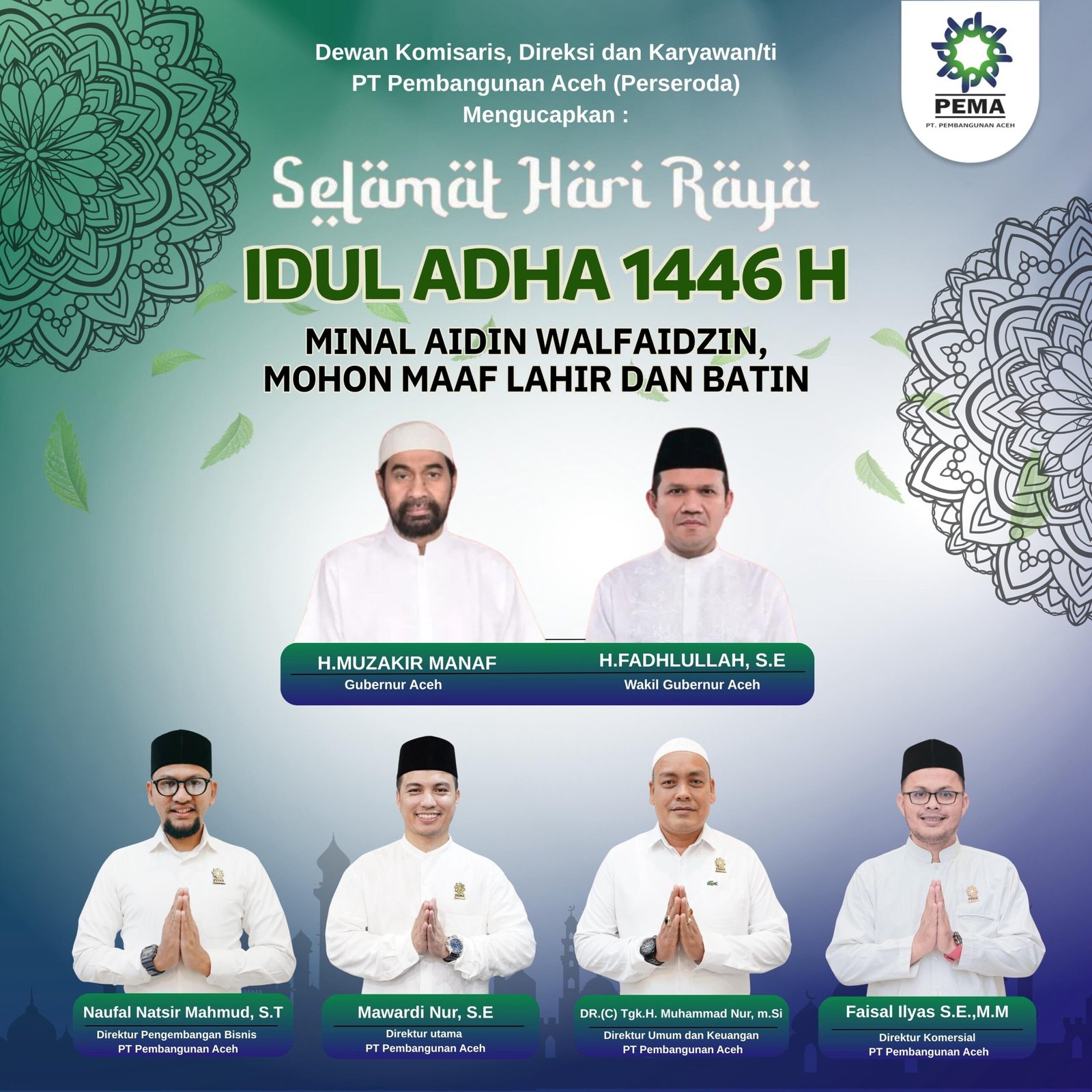 BANDA ACEH – Direktur Utama PT Pembangunan Aceh (PEMA), Ali Mulyagusdin didampingi Direktur Keuangan, Muhammad Oky dan Direktur Pengembangan Bisnis, Edwar Salim beserta jajaran melakukan