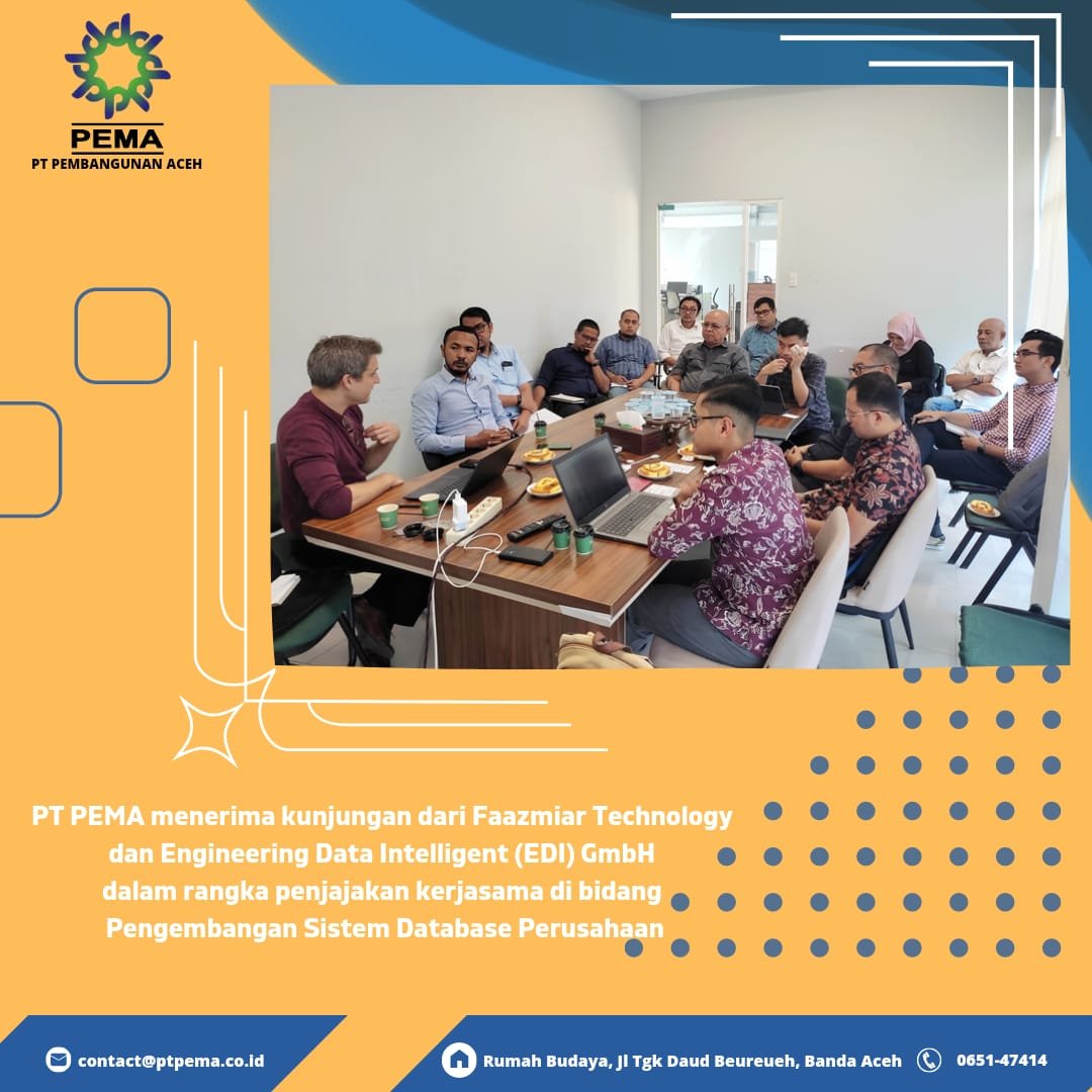 Pada kesempatan ini, FAAZMIAR Technology yang diwakili Fazrul Azree, dan EDI GmbH yang diwakili oleh Mohanad El – Hajj mempresentasikan penawaran bisnis dari perusahaan mereka dan ingin melakukan kerjasama dengan PT Pembangunan Aceh, terutama dalam bidang Pengembangan Sistem Database Perusahaan.