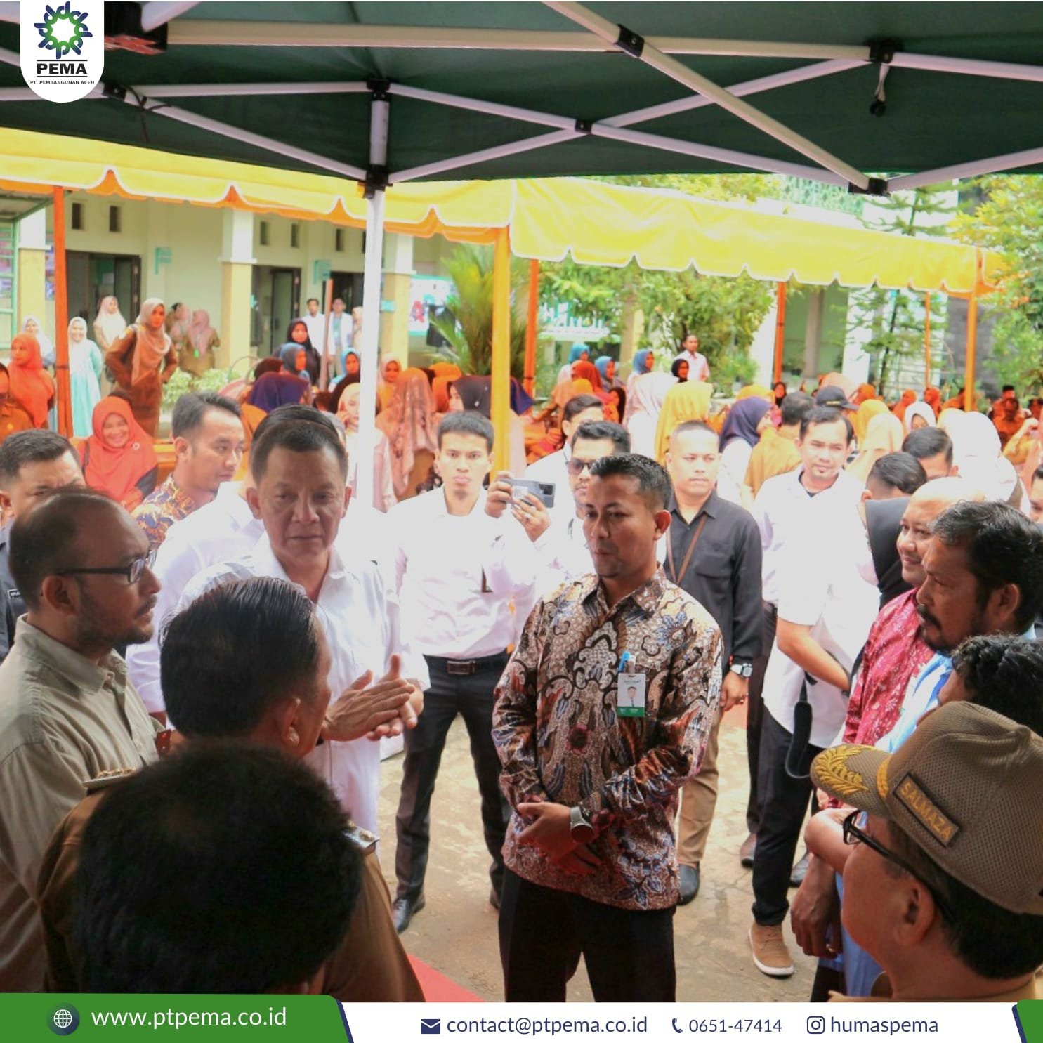 Subulussalam – Direktur PT Pembangunan Aceh (PT PEMA), Ali Mulyagusdin turut hadir mendampingi Pj. Gubernur Aceh, Achmad Marzuki pada kunjungan kerjanya di daerah Barat Selatan Provinsi Aceh pada 7-10 Mei 2023. Kunjungan kerja yang diawali di kota Subulussalam (Senin, 8/3/23) ini diawali di titik pertama, yaitu Puskesmas Penanggalan, dengan agenda kegiatan Penanganan Stunting, Gemarikan, dan penyerahan bantuan kepada pelaku usaha tempe dan tahu. Selain rangkaian kegiatan diatas, Dalam kegiatan kunjungan kerjanya, Pj Gubernur meminta kepada PT PEMA untuk dapat melihat potensi terkait bahan baku utama pembuatan tempe dan tahu, yaitu kacang kedelai. Hal ini tidak lain untuk memudahkan kegiatan produksi kegiatan pelaku usaha tempe dan tahu di Kota Subulussalam.
